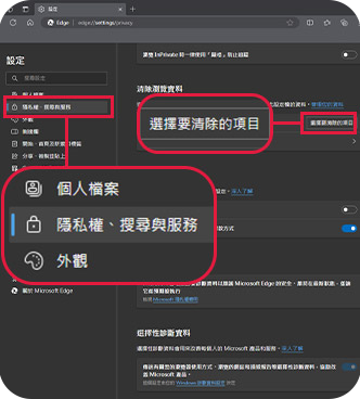 3. 進入後,選擇[清除瀏覽資料]如示意圖一樣。